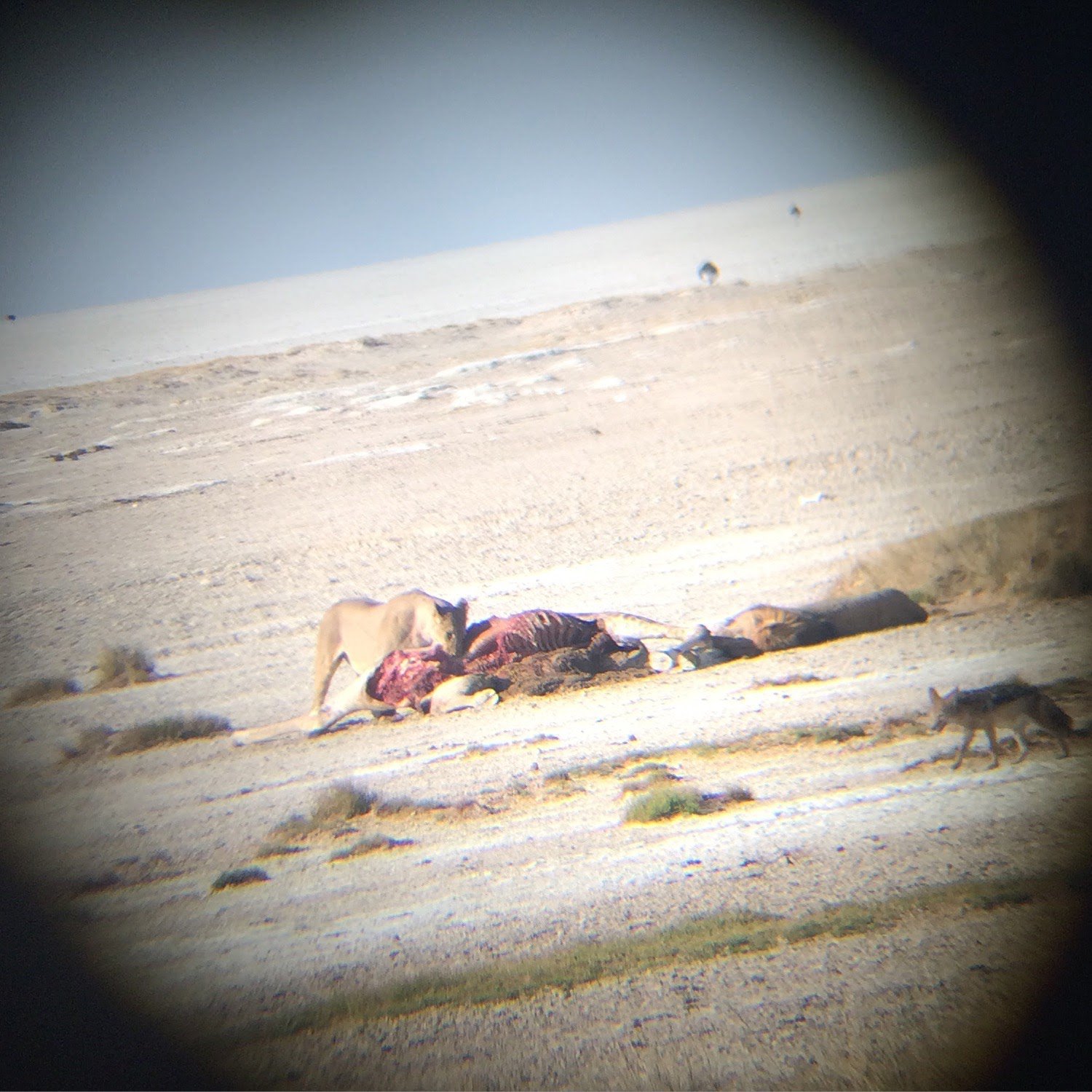 Did *you* see lions eating a giraffe while jackals circled on *your* honeymoon? (Etosha National Park, Namibia, after an amazing field season)